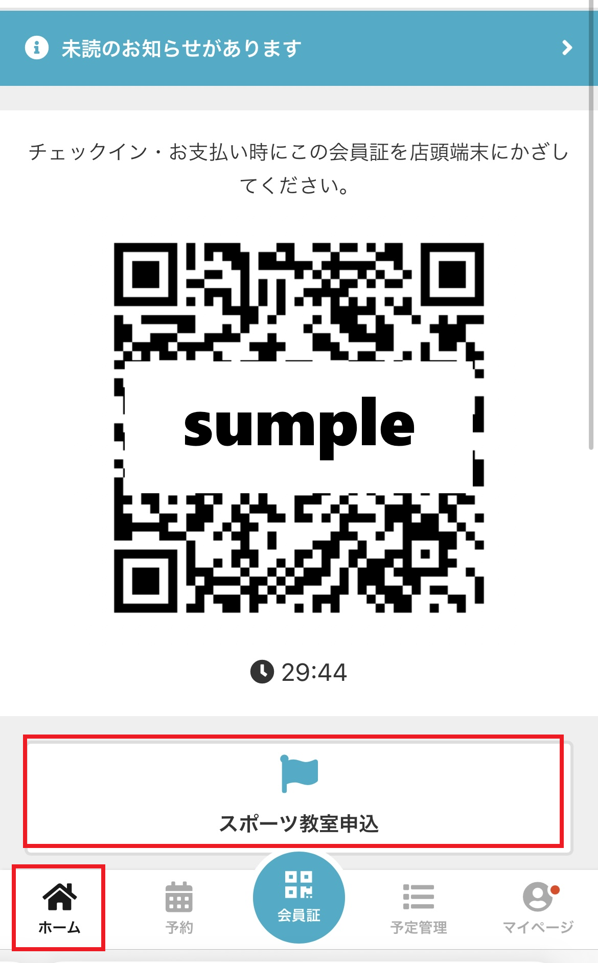 申込手順①「hacomono」利用登録hacomonoヘ登録済みの方は こちら から hacomonoの新規利用登録は こちら から ②受講したい教室に申込「ホーム」内の「スポーツ教室申込」から受講したい教室に応募する。